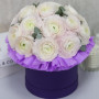 17 белых ранункулюсов в шляпной коробке в Нефтеюганске