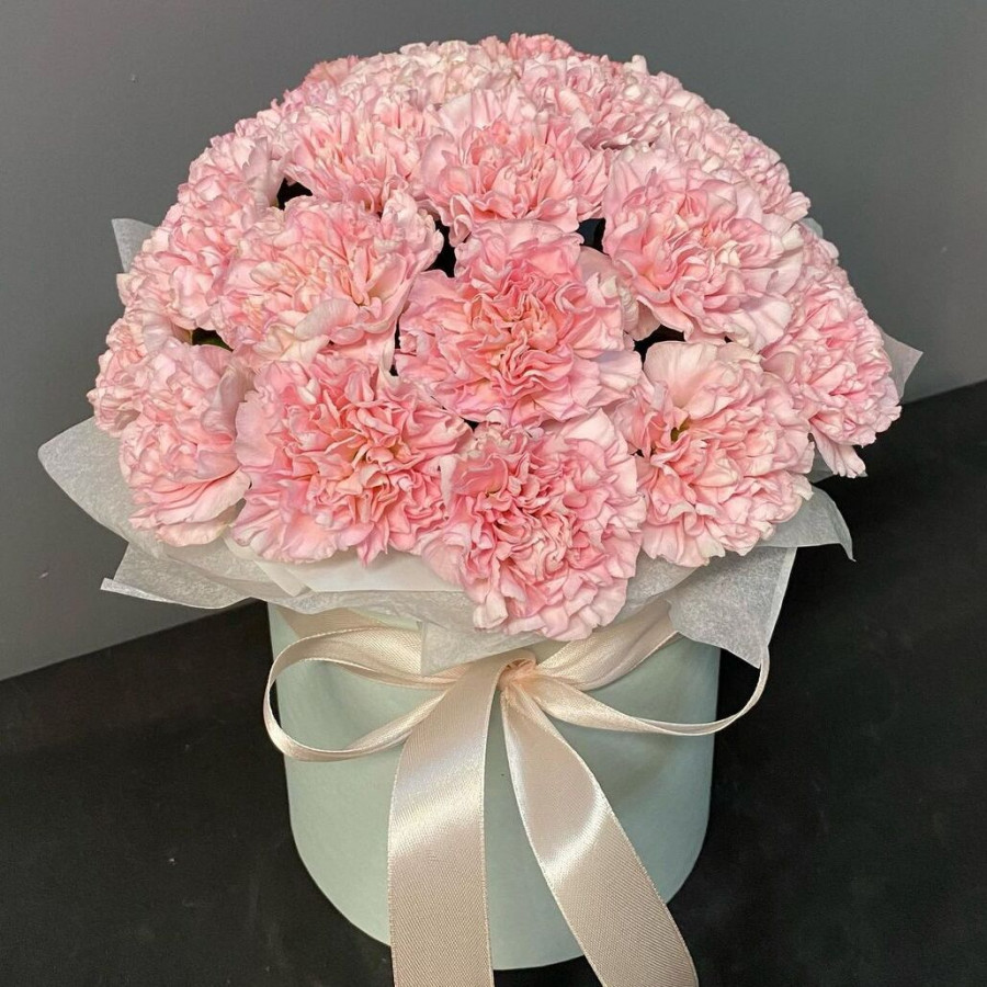 21 белая гвоздика в розовой шляпной коробке — это прекрасный подарок для тех, кому вы хотите выразить свою любовь и уважение. Гвоздики символизируют радость и счастье, а розовый цвет придает букету нежность и романтичность. Шляпная коробка добавляет букету элегантности и утонченности, а ленточки с бантиками придают букету еще больше красоты и изящества. Этот букет будет долго радовать получателя своей свежестью и красотой, напоминая о вашей заботе и любви.