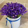 45 фиолетовых ирисов в шляпной коробке в Нефтеюганске