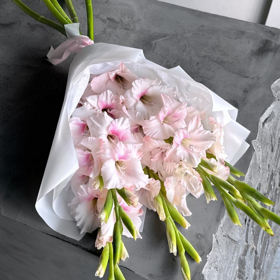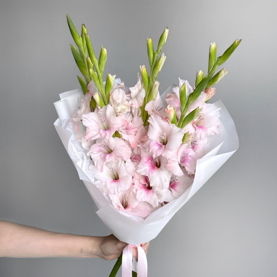 Букет из 5 розовых гладиолусов в Нефтеюганске