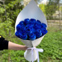 На фото букет из 17 синих роз. В составе: роза (синяя) 17 шт, крафт-бумага 1 шт, атласная лента 1 шт, . Все цветы свежие и ароматные, букет красиво оформлен и отлично подходит для подарка. Доступна доставка цветов или самовывоз.