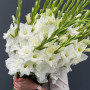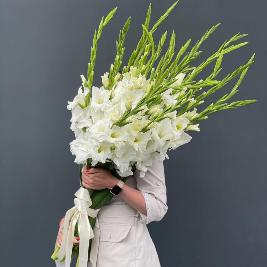 Букет из 19 белых гладиолусов под ленту в Нефтеюганске