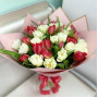 Букет из 31 белого и красного тюльпана в Нефтеюганске