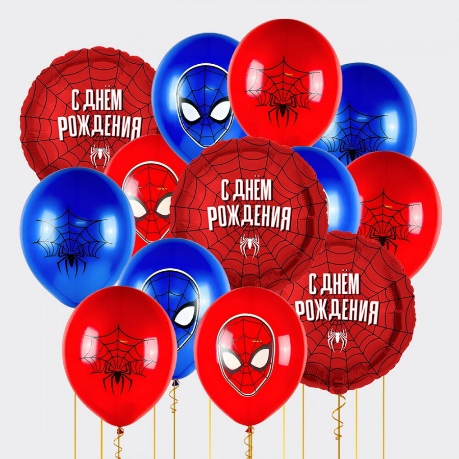 На фото набор воздушных шаров «человек-паук». В составе: . Все цветы свежие и ароматные, букет красиво оформлен и отлично подходит для подарка. Доступна доставка цветов или самовывоз.